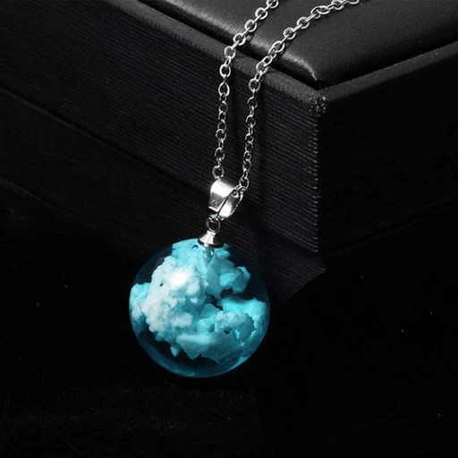 Look up to see where we get inspiration for this piece. Yes, the skies! Inside the sky-blue spherical ball are clouds delicately floating. This ne...