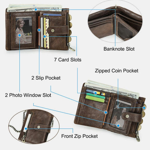 Product Parameters Gender: Male Bag Type: Wallet Material: Genuine Leather Occasion: Daily Bag Size: 3.7'' × 1'' × 4.5'' /9.5×2.5×11.5CM In...